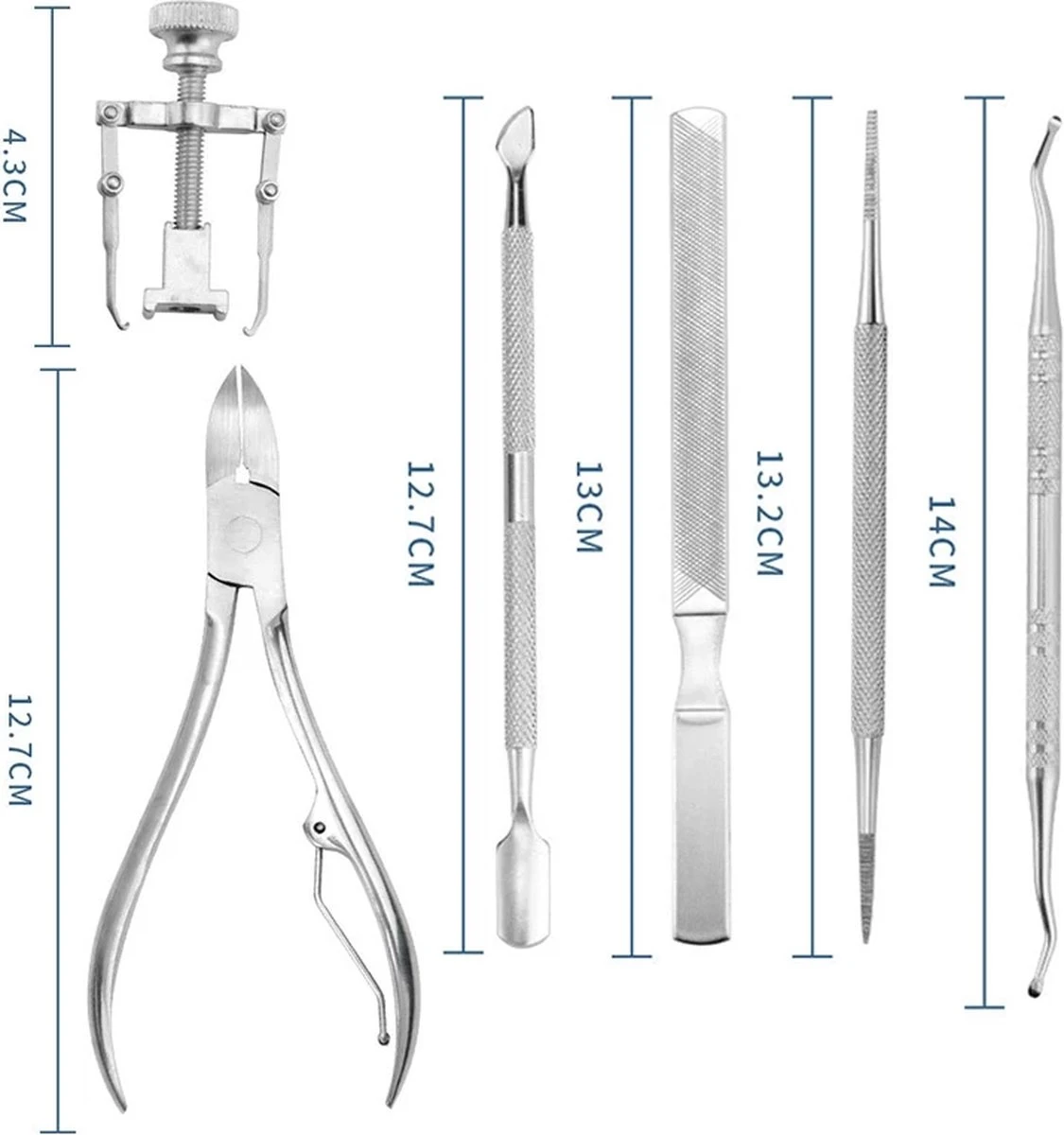 Neemt u vaak de benenwagen en krijgen uw voeten veel te verduren? Heeft u een handje van nagelbijten? Gruwelt u zoals zovelen geregeld van uw eigen voeten of handen en kunnen ze wel wat liefde gebruiken? Geen zorgen: met deze nagelsetje wordt u uw eigen pedicure! Deze professionele 7-delige pedicure set is een complete starter set en zowel geschikt voor de dagelijkse verzorging van voeten als handen. Vindt u goed verzorgde nagels belangrijk, dan is deze set een must. Een heerlijke manicure, maar ook zeker voor wie snel last heeft van die irritante ingegroeide teennagels, is deze set een uitkomst.