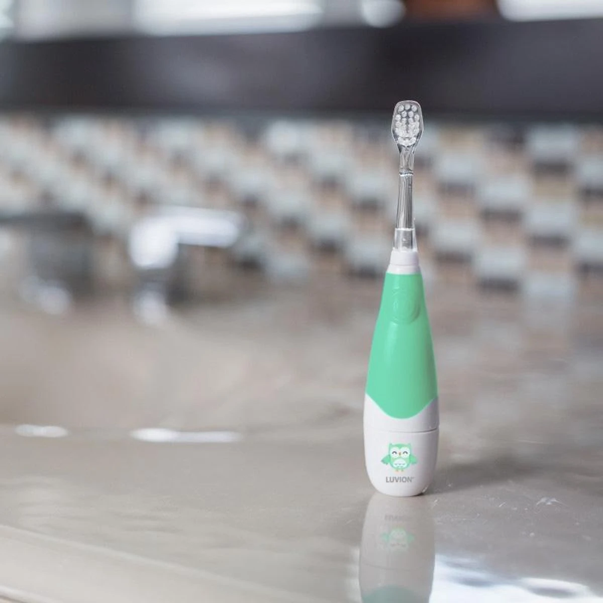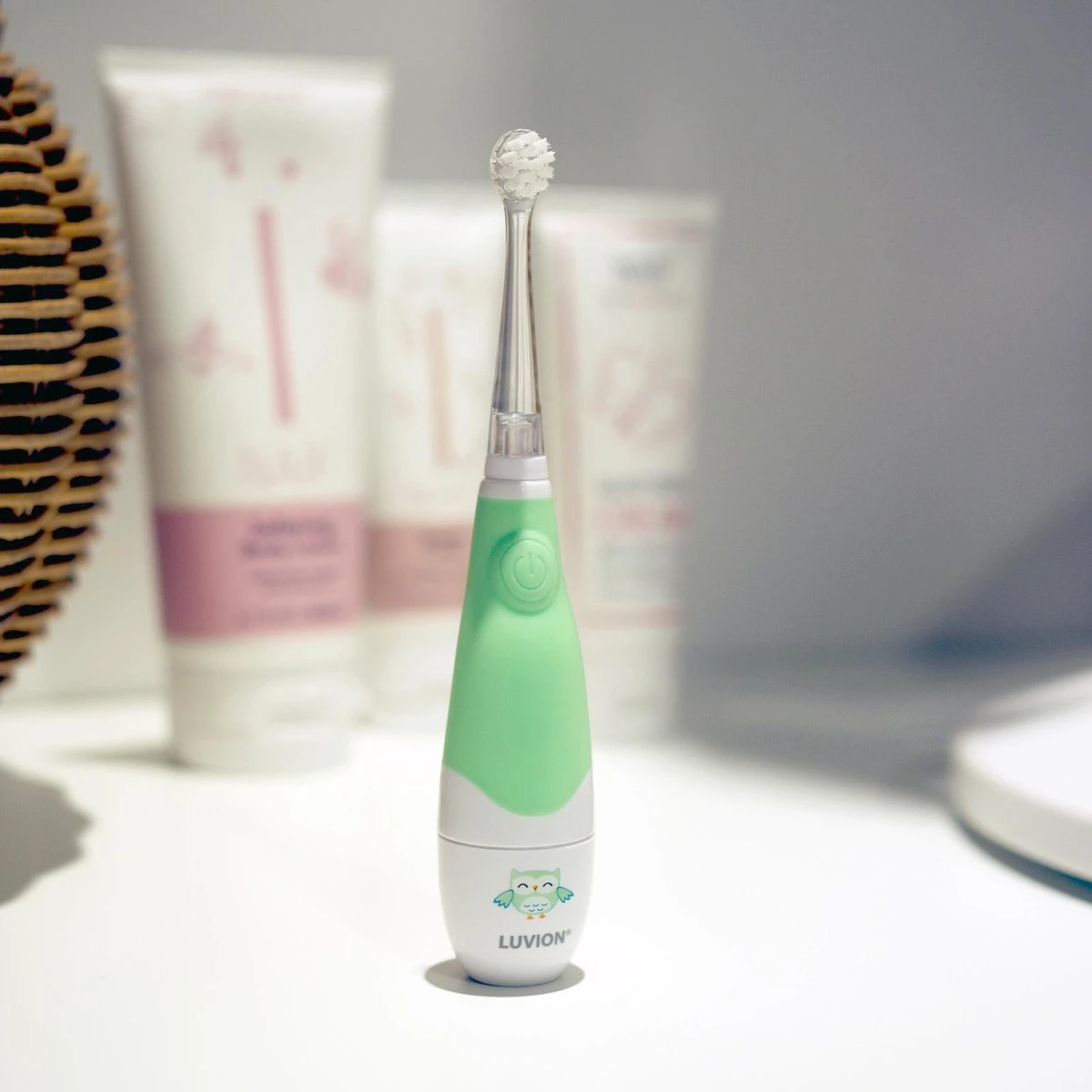 Met deze Luvion elektrische baby tandenborstel poets veilig en goed de eerste tandjes van je kleine baby of peuter. De sonisch pulserend bewegende borstelkop zorgt er dankzij de 16000 bewegingen per minuut voor dat de tanden zeer goed worden schoongemaakt.