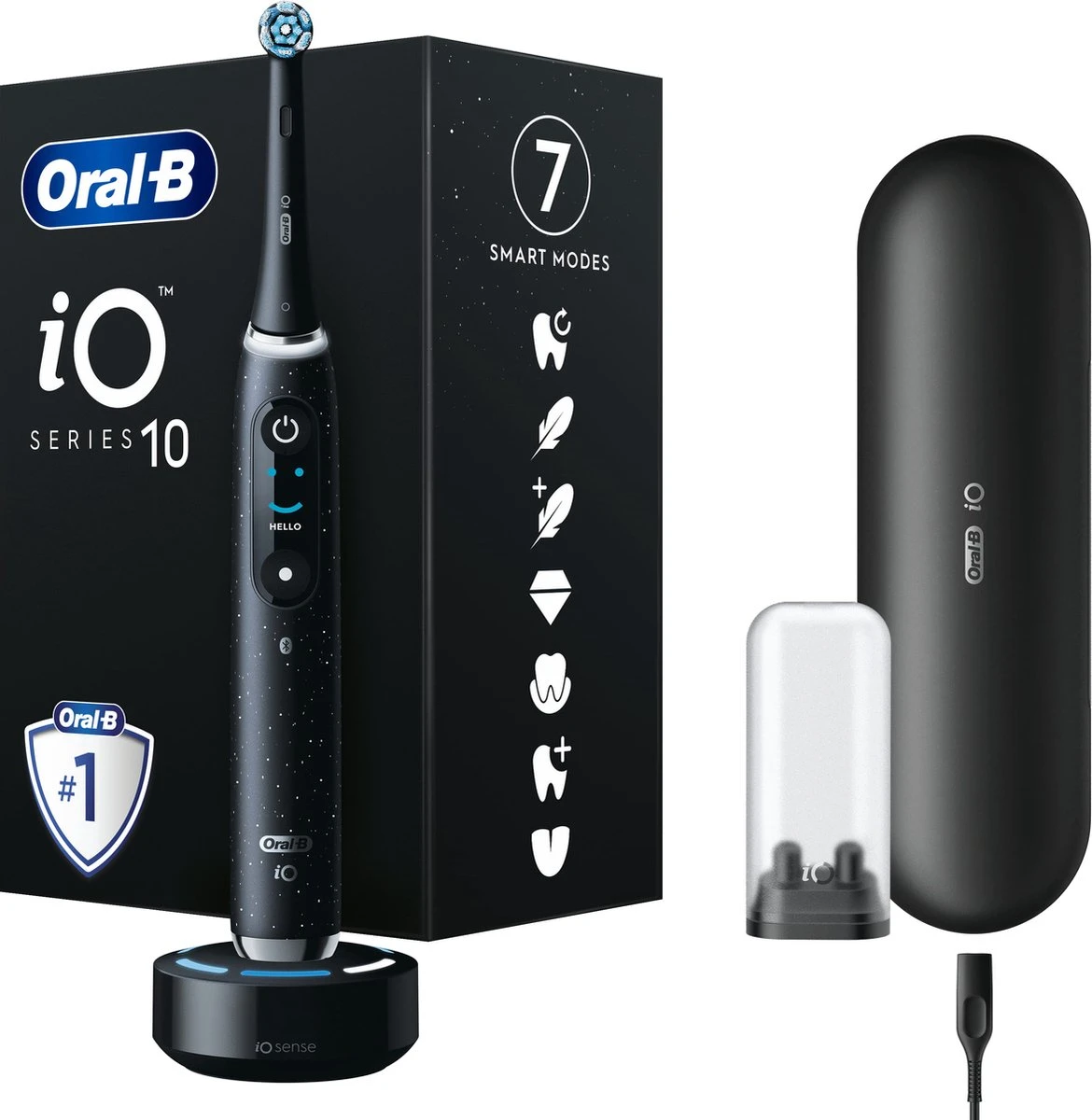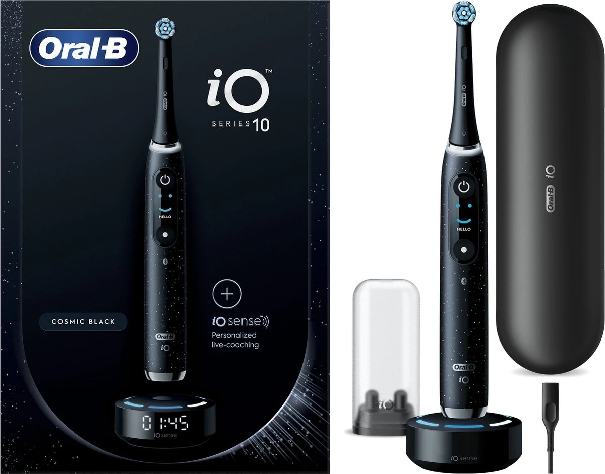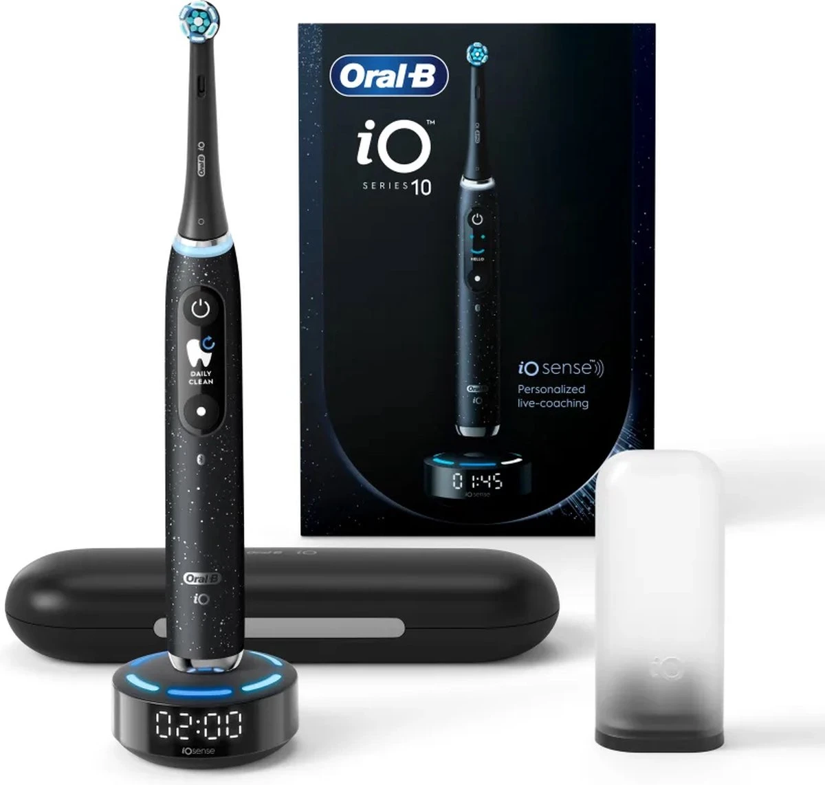 - Inhoud: 1 iO10-handvat met ultimate clean opzetborstel, 1 oplaadreisetui, 1 slimme iO Sense oplader die 3 uur snel oplaadt, 1 opzetborstelhouder