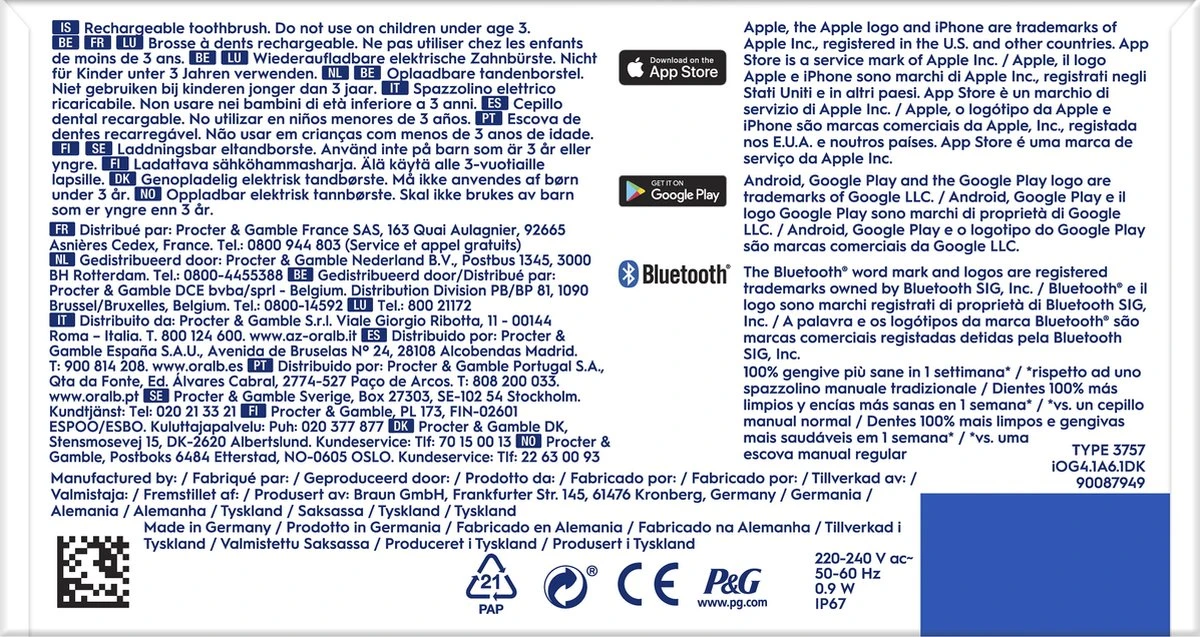 - Inhoud: 1 iO4-handvat, 1 opzetborstel, 1 reisetui, 1 oplader, 1 opzetborstelhouder
