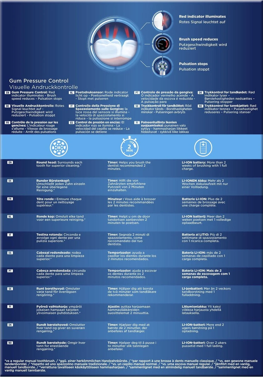 - Bescherm uw tandvlees: De poetsdruksensor waarschuwt u als u te hard poetst