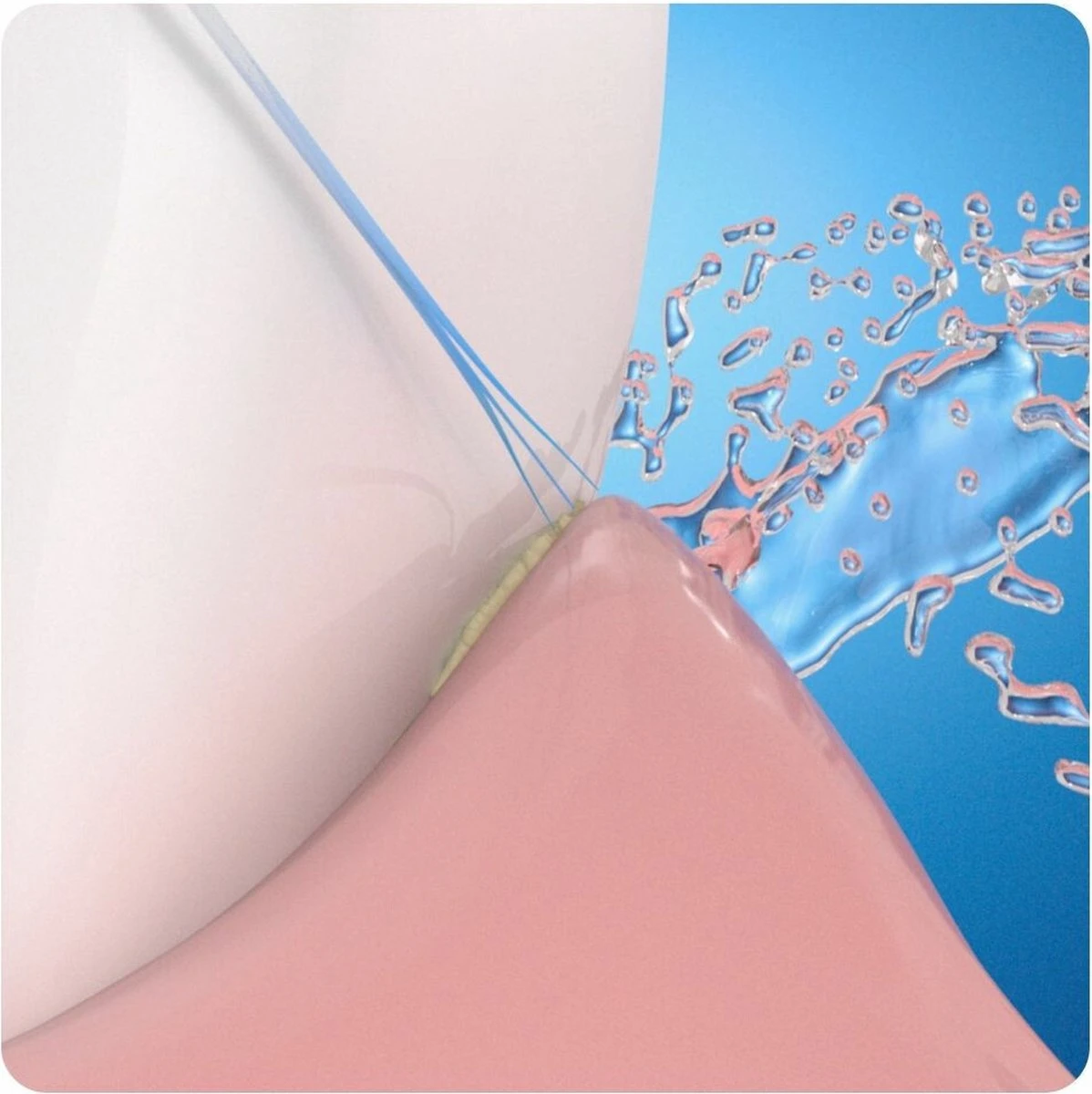Ontworpen in samenwerking met tandartsen: ronde opzetborstel met ultradunne en gewone borstelharen, zacht voor het tandvlees, efficiënt tegen tandplak.
