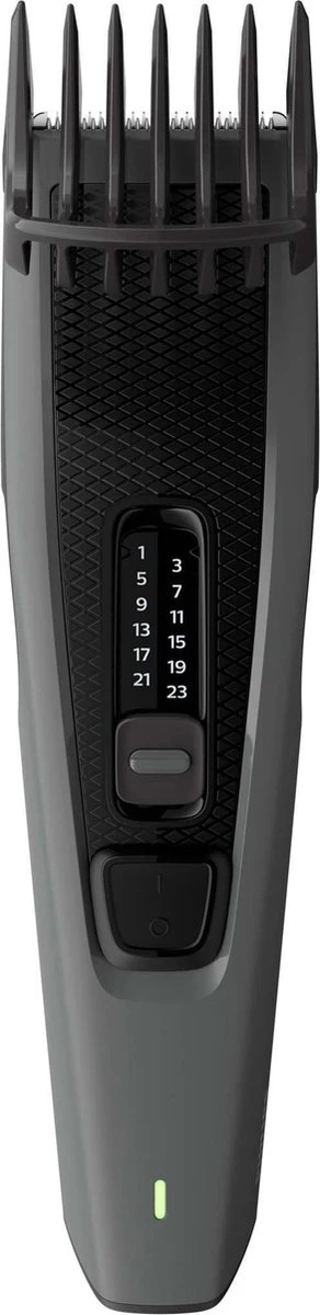 Stel eenvoudig de gewenste lengte in. De instelbare kam heeft 12 vergrendelbare lengtestanden, van 1 mm tot 23 mm, met precies 2 mm tussen elke lengte. Verwijder de kam voor een glad trimresultaat van 0,5 mm.