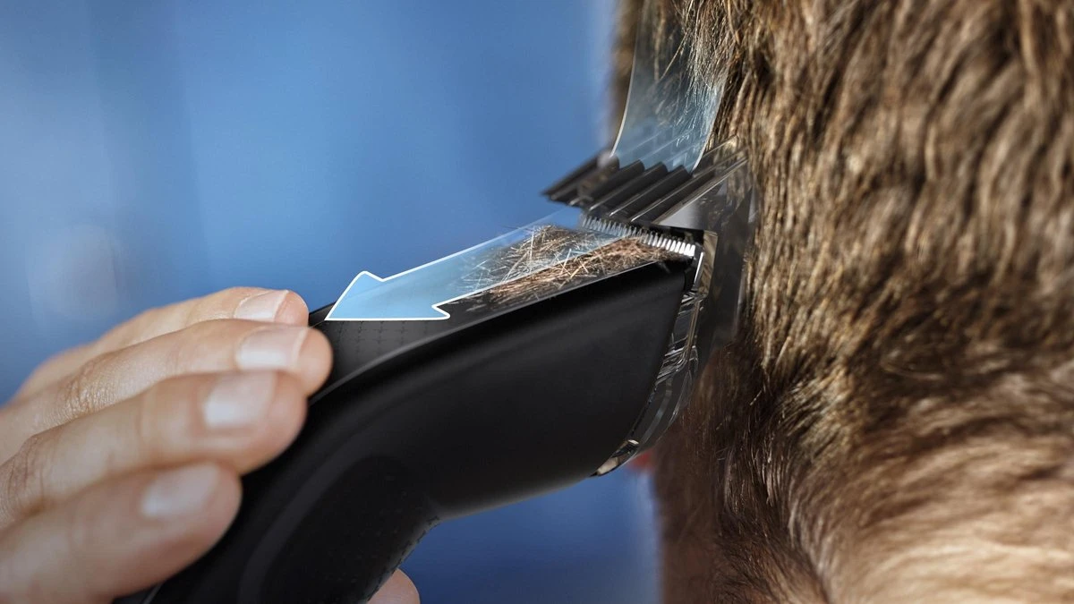 DualCut-technologie: Trim krachtig elk type haar met onze geavanceerde DualCut-technologie: een innovatief dubbelzijdig knipelement dat het haar twee keer zo snel trimt als eenzijdige mesjes.